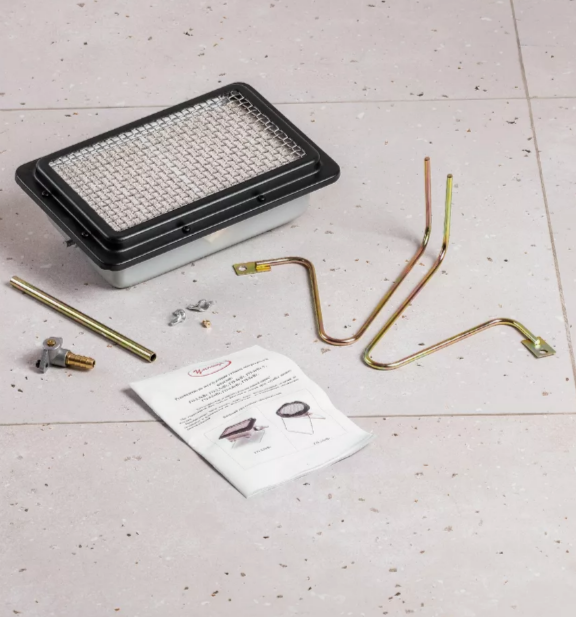 - Работает на природном и сжиженном газе: изготовителем на обогреватель установлена форсунка для сжиженного газа, в комплекте имеется форсунка для природного газа.