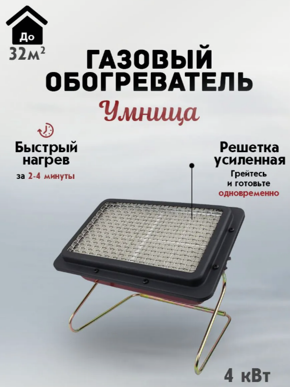 Несомненным плюсом газового обогревателя Умница ГО-4кВт-У считается его небольшая величина, благодаря чему прибор легко перемещать и применять в разнообразных обстоятельствах. Утолщенная защитная решетка обеспечивает лучшую защиту от деформации и повышает безопасность эксплуатации. Топливом модели является природный и сжиженный газ.